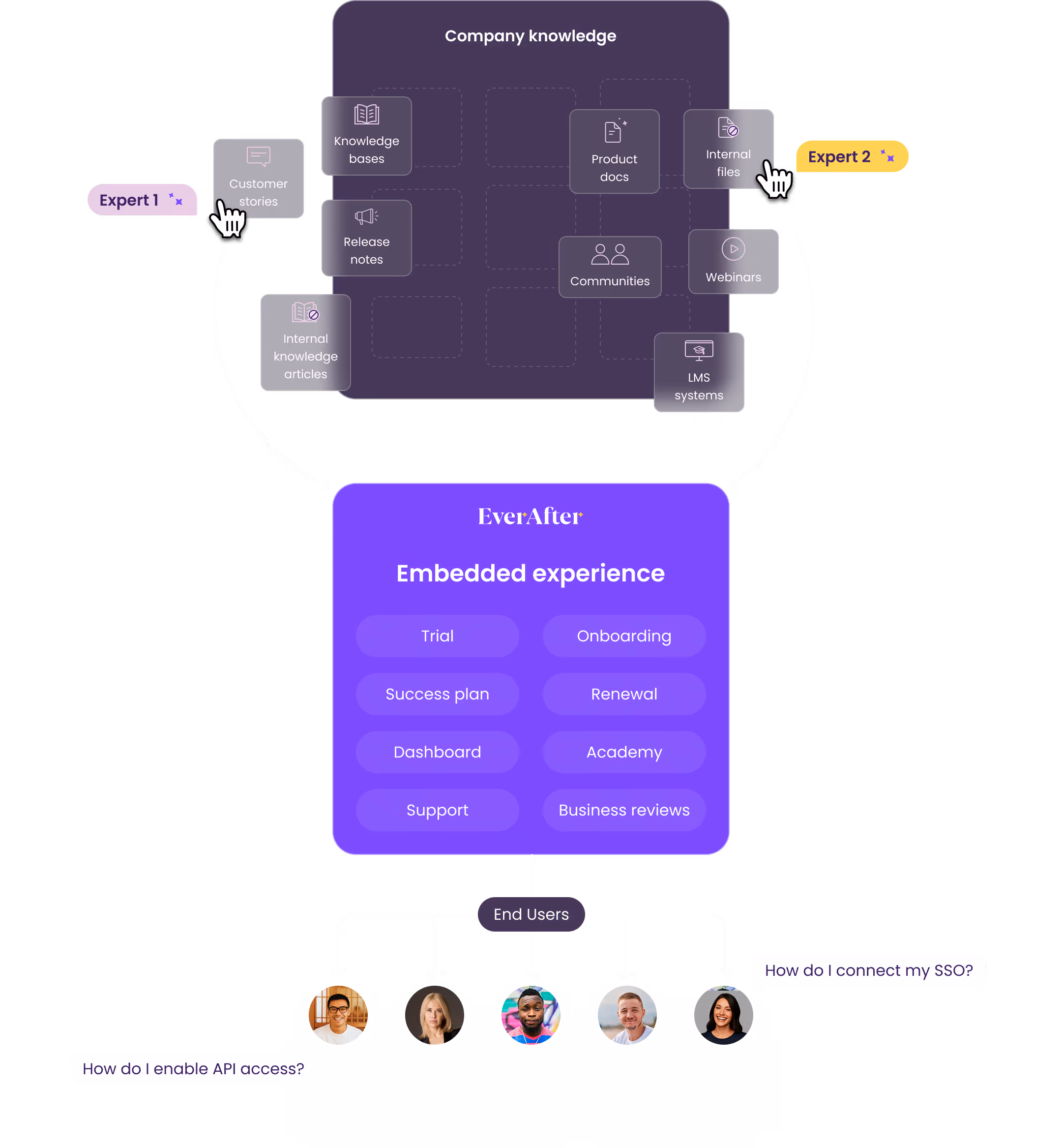 Your company creates a wealth of valuable content: Knowledge bases, Training modules, Release notes, Internal wikis, Support tickets, CRM records, CRM records, Product docs, And more...