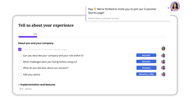 Automatically identify key "aha" milestones and trigger a request for a DIY customer story.