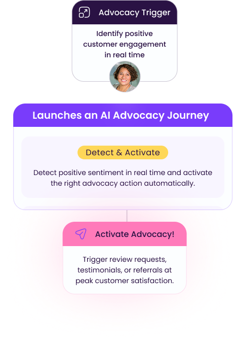 Using real-time AI agents, you can turn positive sentiment into personalized, fun requests for social proof: